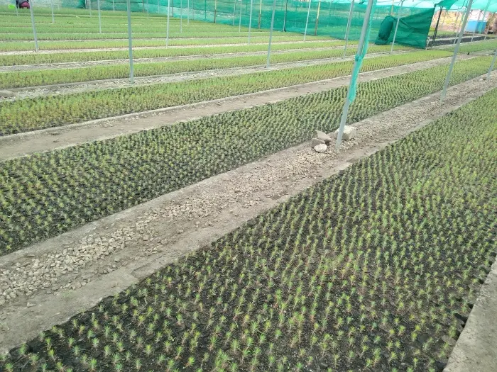 Der Erfolg einer Forstplantage hängt in erster Linie von der guten Qualität der Setzlinge ab; diese müssen unter besten Bedingungen produziert werden. Die Pflanzen stammen aus einer spezialisierten Baumschule, die die Verwendung ausgewählter Samen, die besten Substrate für Beete, die Mykorrhizierung der Wurzeln und die besten Gesundheitsbedingungen für die jungen Bäume gewährleistet. Mit einer durchschnittlichen Höhe von 25 cm werden die Ballenpflanzen für die Pflanzung verwendet.